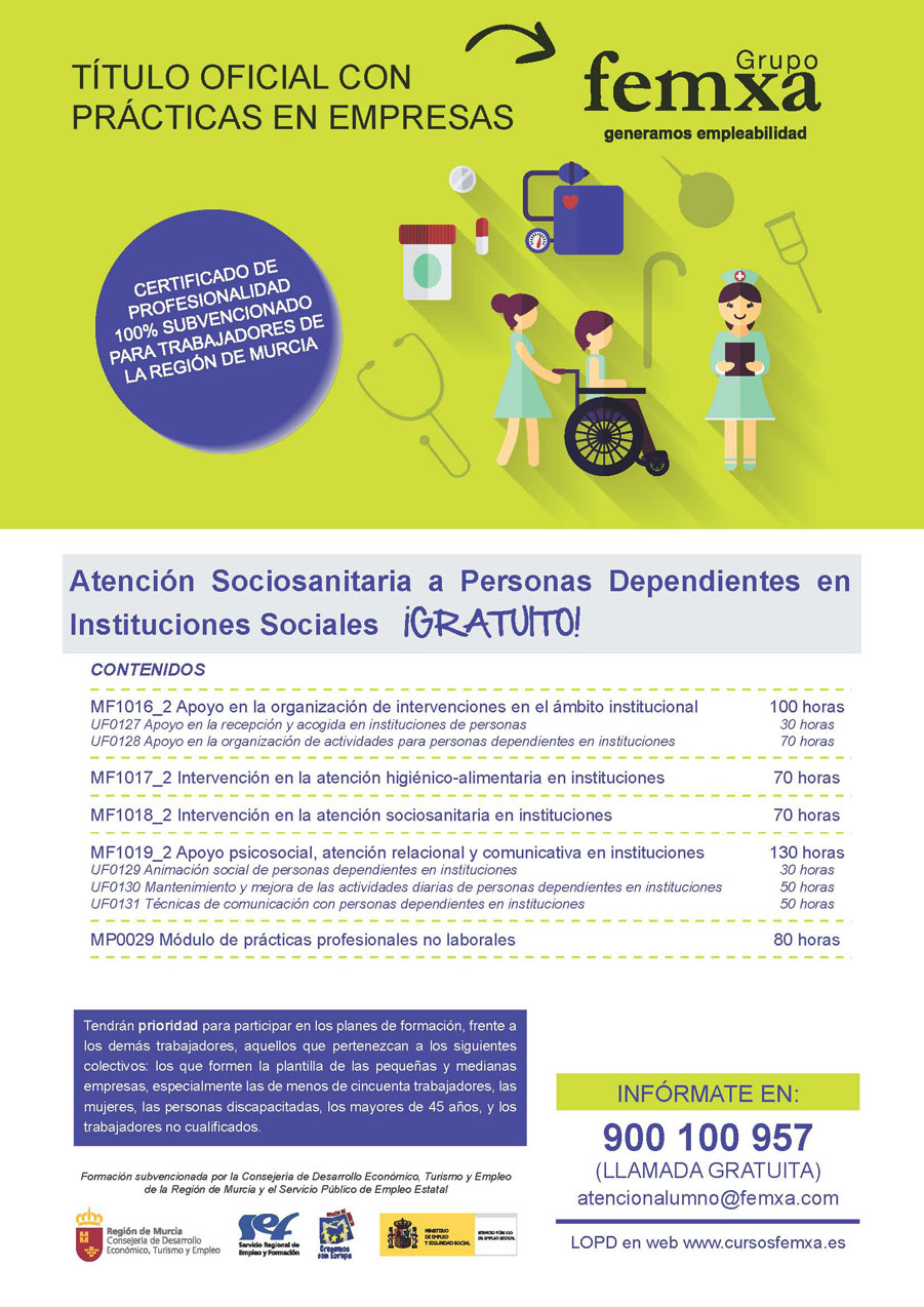 Se requieren estudios mínimos de ESO o equivalente: Atención Sociosanitaria a Personas Dependientes en Instituciones Sociales: https://www.cursosfemxa.es/atencion-sociosanitaria-a-personas-dependientes-en-instituciones-sociales-90-curso