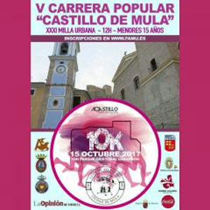 La V Carrera Popular Castillo de Mula, tendrá lugar el próximo 15 de octubre a partir de las 9:30h. con salida y meta en el Parque Cristóbal Gabarrón, con un circuito de 10km. que se desarrollará alrededor del Castillo ofreciendo unas privilegiadas vistas de la ciudad de Mula. Esta carrera está abierta a todo tipo de corredores, (federados o no federados),