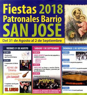 Las fiestas del barrio de San José se celebran del 31 de agosto al 2 de septiembre, y recogen un amplio programa de actividades dirigidas a todos los públicos y organizadas por su Asociación de Vecinos.