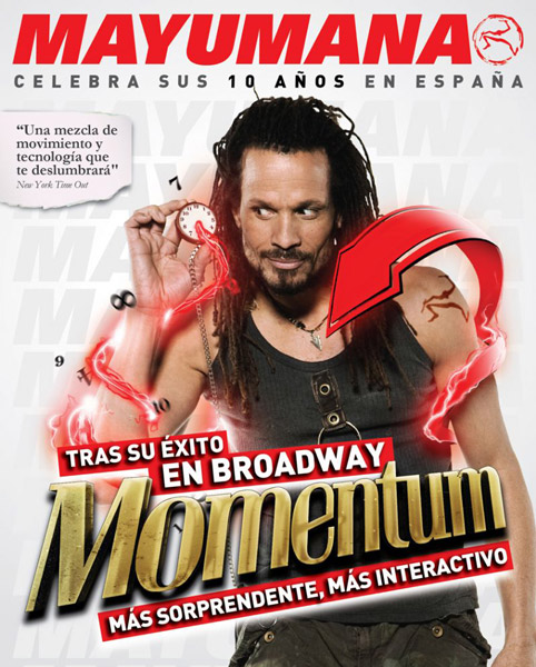 Momentum es el último espectáculo de Mayumana, con el que la compañía celebra sus diez años de giras por España, y en el que se combina a la perfección danza, música, percusión, humor y conexión directa con los espectadores.