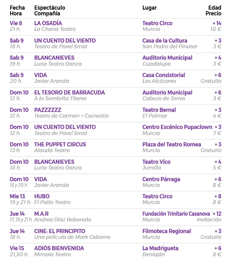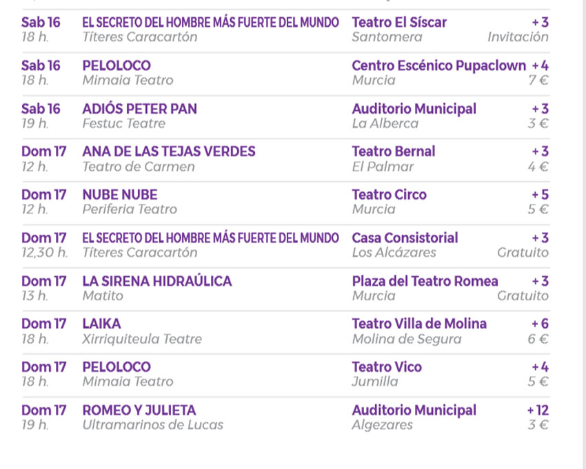 + info y enlaces a venta de entradas en www.titeremurcia.com o en la taquilla de cada espacio.