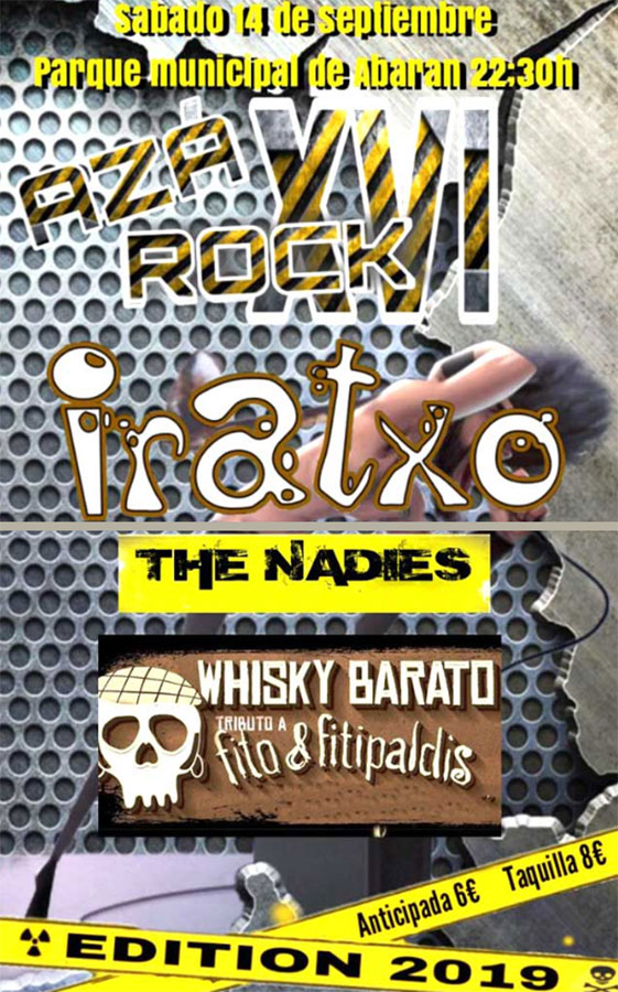Llega la 16ª edición del festival Azá Rock. En esta ocasión, tres grupos, de altísimo nivel, con un cartel, obra de Ricardo Romero, que encabeza 'Iratxo', una banda de lo más experimentada a nivel nacional, junto a 'The Nadies' de Blanca, o 'Whisky Barato', con un tributo a Fito y Fitipaldis.