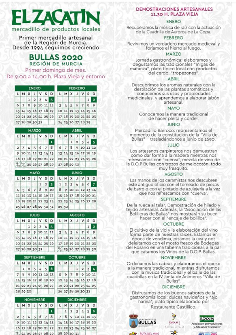 El Zacatín es el mercadillo tradicional de Bullas, donde el visitante encontrará productos artesanales de calidad propios de la localidad.