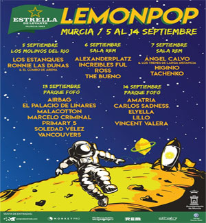 El Festival Lemon Pop celebra su XIV edición del 5 al 14 de septiembre con actuaciones en el Auditorio Parque de Fofó, en la terraza de Los Molinos del Río y la Sala REM.