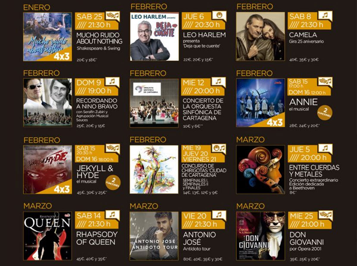 El humor, musicales, conciertos, danza, teatro, ópera, zarzuela y música sinfónica serán los principales protagonistas de esta nueva programación