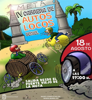 El Ayuntamiento de Beniel y sus Concejalías de Juventud y Festejos organizan la "IV Carrera de autos locos" el día 18 de Agosto a las 19:00 h. con motivo de las fiestas patronales.