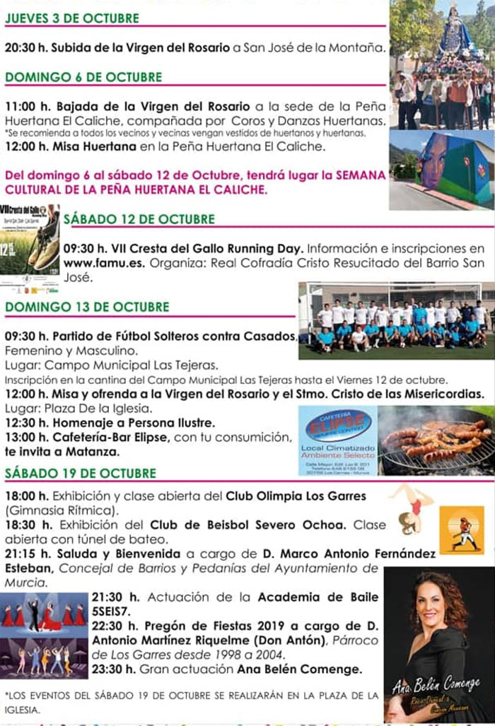 Murcia. Fiestas Patronales de Los Garres en honor del Santísimo Cristo de las Misericordias y Ntra. Sra. del Rosario 2019