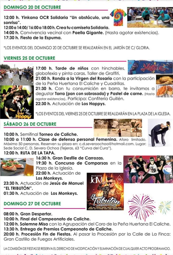 Las fiestas de la pedanía en honor del Santísimo Cristo de las Misericordias y Ntra. Sra. del Rosario se desarrollarán del 3 al 27 de octubre.