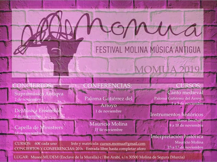La III edición del Festival Molina Música Antigua (MOMUA 2019) tendrá lugar del 25 de octubre al 17 de noviembre, en el Museo del Enclave de la Muralla