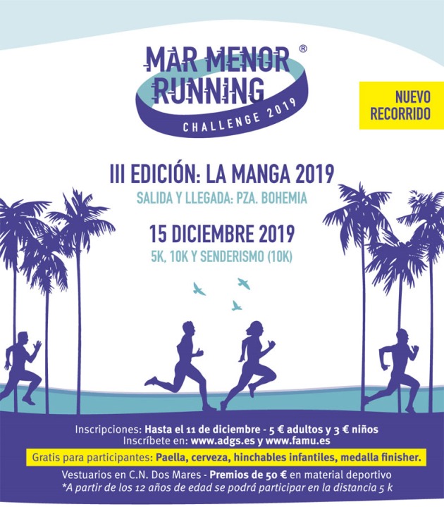 El Mar Menor será el escenario, el día 15 de diciembre, a partir de las 10:30 horas, de la Mar Menor Running Challenge 2019, una prueba popular con salida y meta en la Plaza Bohemia de La Manga.