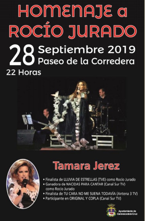 El Paseo de la Corredera de Caravaca de la Cruz termina el mes de septiembre con un homenaje a la gran Rocío Jurado, a través de la voz de la malagueña Tamara Jerez, que recuerda como ninguna otra, a la cantante de Chipiona.
