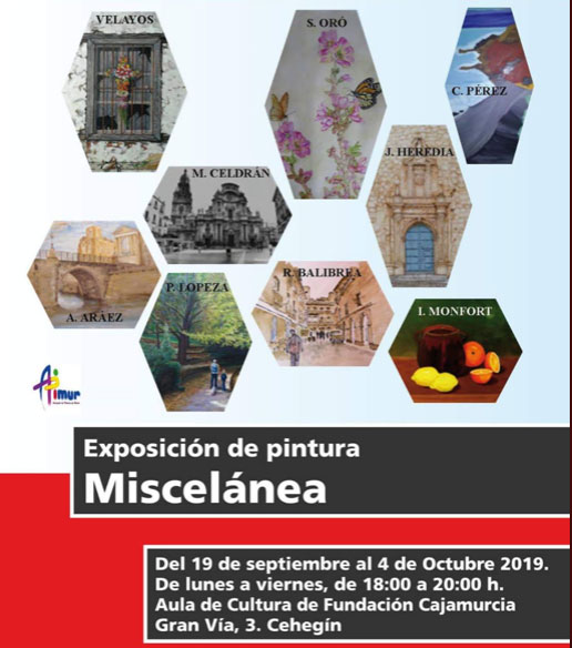 El Aula de Cultura de la Fundación Cajamurcia de Cehegín acoge la exposición de pintura Miscelánea cuya inauguración tendrá lugar el próximo 19 de Septiembre a las 20hrs, comisariada por Mariángeles Ibernón.