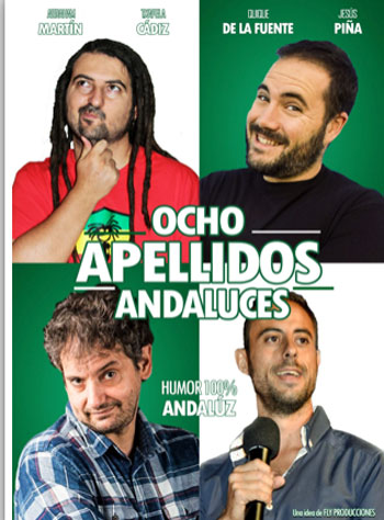Ocho apellidos andaluces es la suma de cuatro cómicos andaluces y hermanos de padre (Quique de la Fuente, Txapela de Cádiz, Abraham Martín y Jesús Piña), pero cada uno de distinta madre, se juntan para llenar de carcajadas los teatros y salas con su nuevo show de impro y monólogos “Ocho Apellidos Andaluces.”