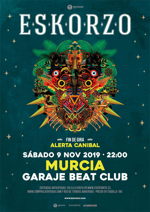 Tras casi dos años y un centenar de conciertos, Eskorzo despide “Alerta Caníbal” por todo lo alto: 14 ciudades serán testigo este otoño del festín antropófago definitivo. De Almería a Santiago, de Málaga a Barcelona, o de Lisboa a Valencia, Eskorzo recorrerá este otoño la península de norte a sur, y de este a oeste, despidiendo la etapa caníbal que tan buen sabor de boca les ha dejado. Llegarán con los colmillos afilados y un directo rompehuesos, dispuestos a no dejar títere con cabeza, haciendo honor a su fama sobre las tablas. Tras estos conciertos, los granadinos se recluirán para preparar su vigésimo quinto aniversario, que se promete antológico. |
