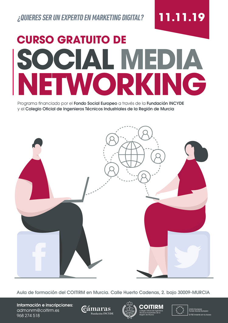 Nuevo programa de Social Media Networking en el COITIRM de Murcia (Calle Huerto Cadenas, 2, 30009 Murcia) a partir del 11 de noviembre de 2019.