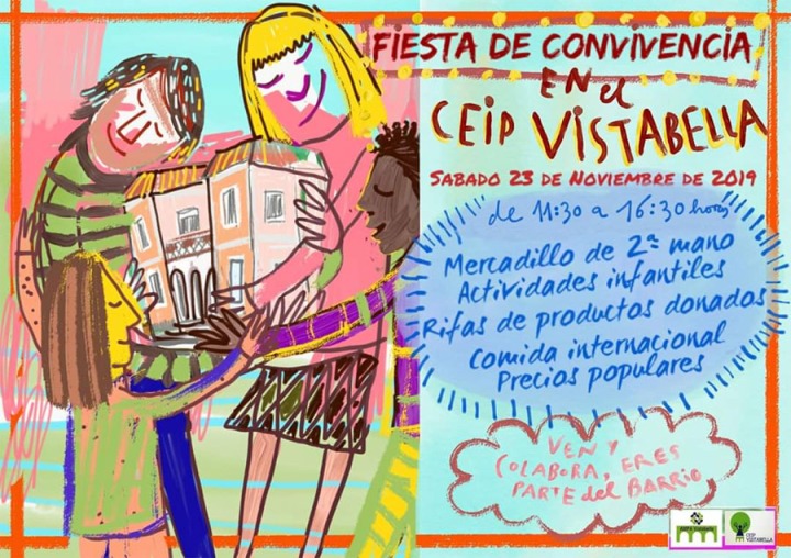 El próximo sábado 23 de noviembre el CEIP VISTABELLA celebra su tradicional fiesta de convivencia, con mercadillo de segunda mano, rifas, actividades y juegos infantiles y comidas del mundo.