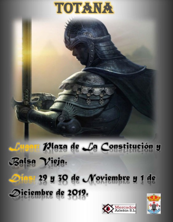Nuevamente se celebra el mercado medieval en la plaza del Ayuntamiento de Totana los días 29, 30 y 1 de diciembre como preludio a las fiestas patronales en honor a Santa Eulalia. El Mercado Medieval recreará la época del medievo.