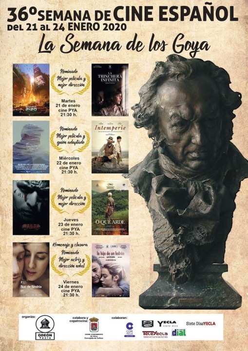 El cierre de la 36ª Semana del Cine Español se producirá el viernes 24 de enero. Ese día se entregará un obsequio diseñado por el artista yeclano Emilio Pascual a los familiares de Alfonso Roses, socio fundador y miembro de la primera Directiva de Cineclub Odeón, fallecido recientemente. Se proyectará el corto ‘Suc de Sindria’ de Irene Moray y la película ‘La hija de un ladrón’ de Belén Funes. Protagonizada por Greta Fernández y Eduard Fernández, ha sido nominada a Mejor Actriz Principal y Mejor Director Novel.