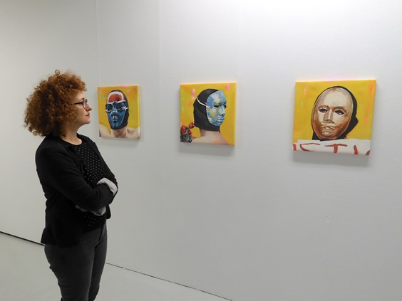 La exposición reúne una treintena de piezas entre cuadros y fotograbados, en los que la artista ha utilizado principalmente el óleo y la pintura en espray para recrear situaciones extraídas de instantáneas encontradas en Internet, imágenes descontextualizadas que mezclan manifestantes desnudos con paisajes desubicados, varios de ellos bosques y, en algunos casos, nevados.