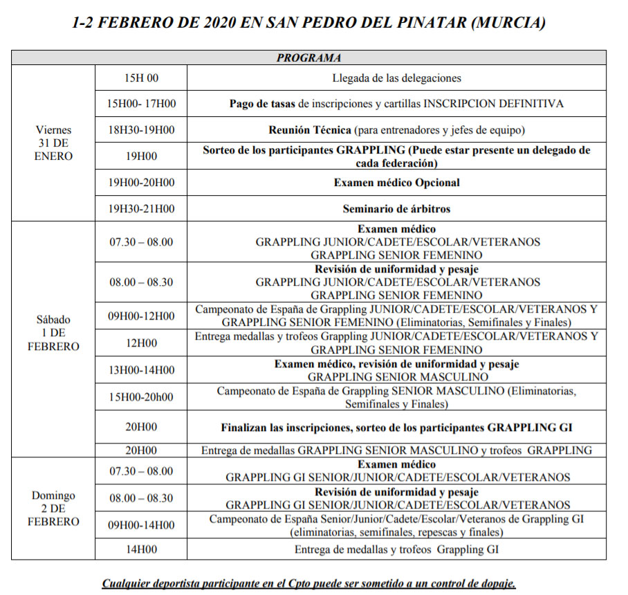 San Pedro del Pinatar. Campeonatos de España de Grappling y Grappling GI 2020