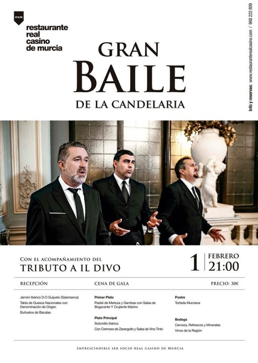 El Restaurante del Real Casino de Murcia celebra un año más el Gran Baile de la Candelaria, una noche especial dedicada a los Socios de la histórica entidad. Será el sábado, 1 de febrero, a las 21 horas.