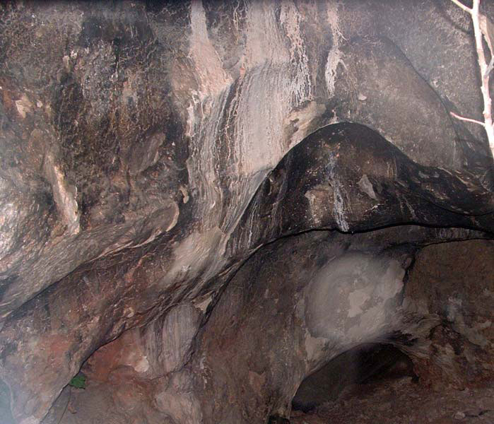 Otra de las figuras en un posible cáprido, es un cuadrúpedo de cuello largo de que se ha perdido su cabeza, tampoco se conserva su cuarto trasero. Este lamentable estado de conservación se debe a los desprendimientos por la acción salina y a unas manchas negras causadas por los murciélagos que habitan estas cuevas.
