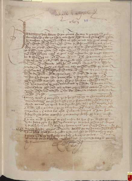 De los aproximadamente quinientos documentos bajomedievales del Archivo Histórico Provincial de Murcia, cuyas fechas datan de entre 1450 y 1504, se puede apreciar su procedencia de dos archivos, el fondo notarial y el de la familia Vozmediano de Arróniz-Puxmarín y Soto, patronos de la fundación del Monasterio de San Pedro de la Ñora.