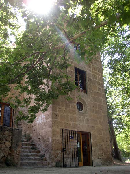 Se trata de una obra de planta cuadrangular, de generosas dimensiones, sobre cuya puerta se abre un característico óculo. Sus muros, levantados con sillería bien labrada, y sus grandes vanos, ya denotan el poco –o nulo– carácter bélico de la torre.
