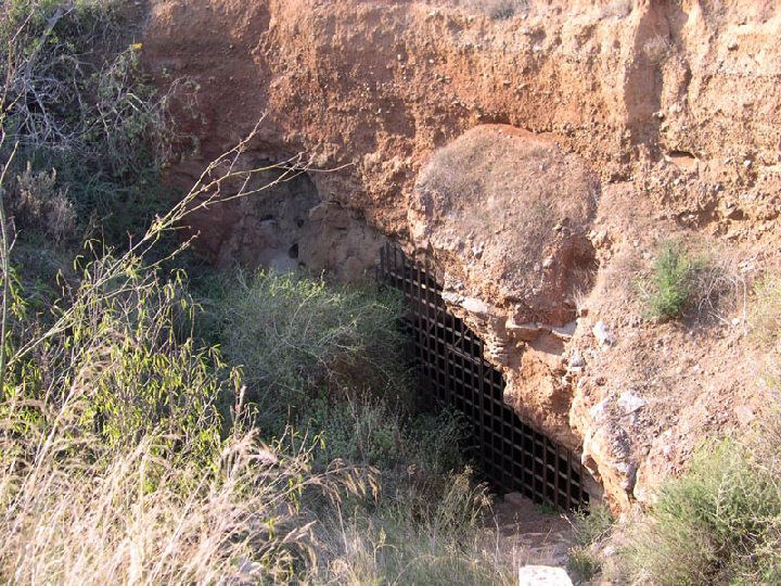 Se sitúa pues, en el lado opuesto a las ermitas, entre ellas y la entrada de la Cueva, aparecen diversas construcciones mineras, hoy en ruinas, así como pozos de aireación, y restos de escombreras.