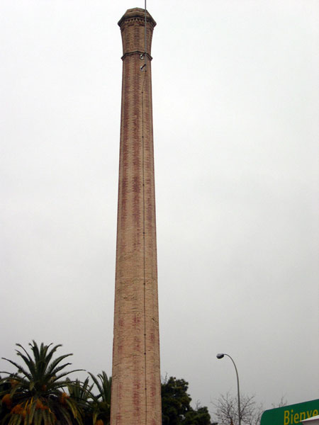 En el municipio de Alcantarilla, dando a la carretera que conduce a Murcia, se encuentra esta chimenea de la antigua fábrica de Jabones de Eduardo Pagán.