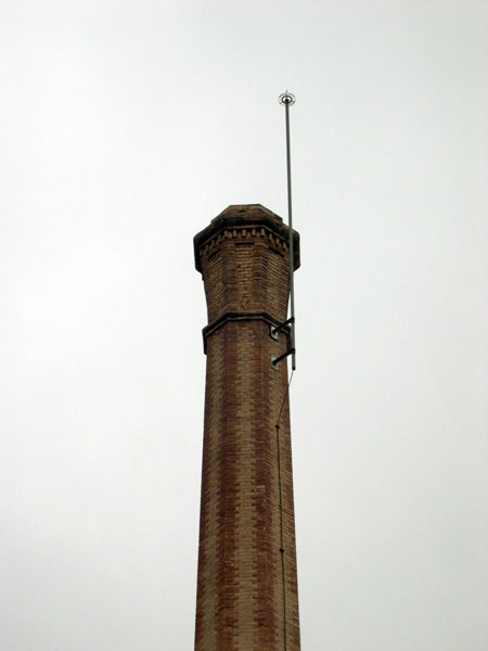 Hasta los años setenta del pasado siglo se conservó el pararrayos que solía coronar todas estas construcciones, pararrayos que, a modo de veleta, tenía en forja las iniciales E.P., referidas al dueño de la industria.