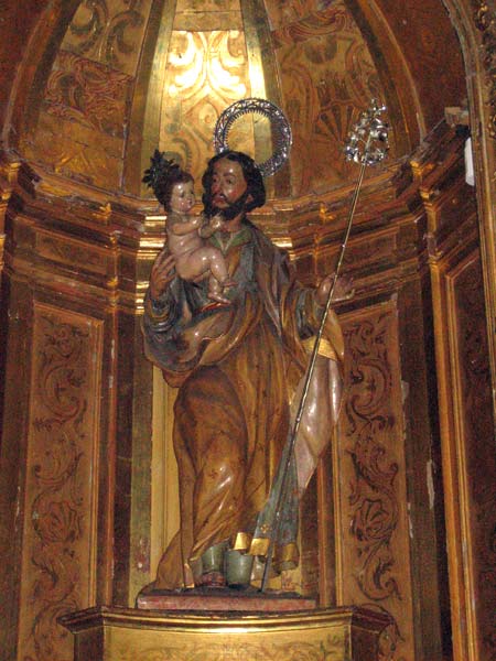 Junto al altar mayor y en el lado derecho aparece una estancia cuyas medidas se asemejan a las capillas laterales. Se trata de un panteón y en uno de sus muros se encuentra la lápida conmemorativa del enterramiento de los Condes del Valle de San Juan. Como anécdota diremos que estos nobles no fueron enterrados en un principio aquí. Antes estaban enterrados en la Iglesia de la Trinidad (donde hoy se encuentra el Museo de Bellas Artes en la calle Obispo Frutos), pero al ser demolido el convento de los Padres Trinitarios, los restos fueron trasladados a esta Parroquia.
