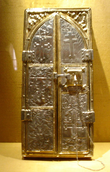 En otra vitrina de la sala, se muestra la arqueta de plata del siglo XIV donada por el maestre de la Orden de Santiago Lorenzo Suárez de Figueroa, que viene usándose desde hace más de 600 años para guardar el 'Lignum Crucis'.