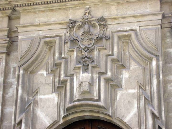Puede apreciarse que los dos nichos destinados a las imágenes de San Pedro y San Pablo, fueron convertidos en dos balconcillos y las imágenes colocadas en los extremos del cornisamento superior. El pliego de condiciones es largo y en él se establece el grueso de las piedras y cómo habrán de asentar en el muro a cubrir.