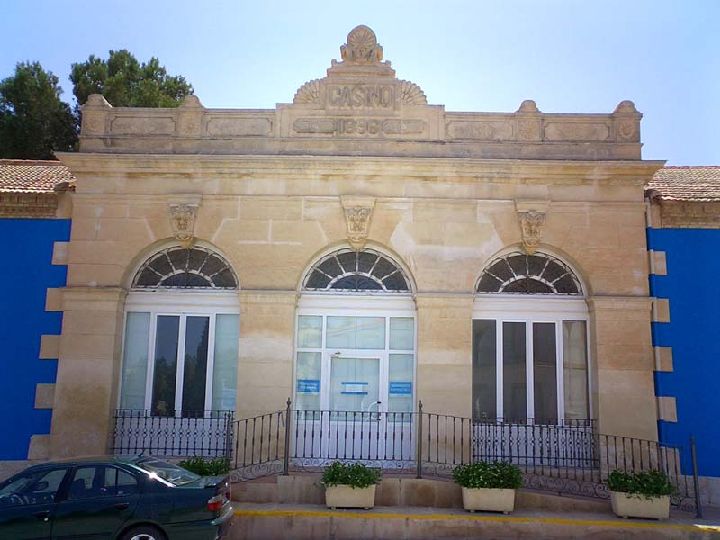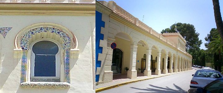 La entrada principal al Casino tiene recuerdos árabes en sus trazos ventanas y arcadas decoradas con motivos