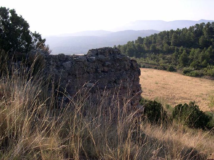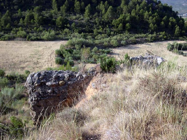 Según el investigador citado, en las inmediaciones de la fortaleza se extiende un conjunto arqueológico contemporáneo a ésta, en el que distinguió diversas estructuras enclavadas en las inmediaciones del castillo, como los restos de un edificio de planta rectangular, balsas, una necrópolis, y, hacia el sur y oeste del cerro, los indicios de una alquería: una explotación agropecuaria que indudablemente se benefició de la existencia de un relevante nacimiento de agua allí existente (el manantial de Los Frailes).