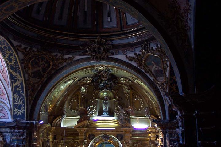 En el crucero, cúpula sobre pechinas decoradas con santos carmelitas y rocallas. El coro se sitúa a los pies, en dos cuerpos: alto y bajo cerrado por celosías de forja del siglo XVI.