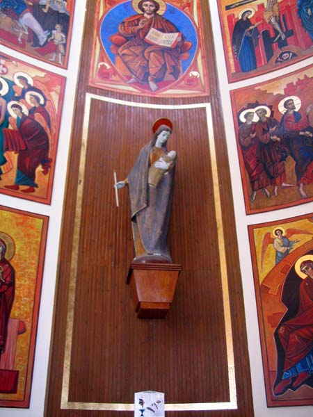Siete óleos, que forman el altar mayor: junto a la titular del templo. Óleo sobre lienzo, obra del murciano Alfonso Muñoz Martínez, en 1999. Cuadros de una corriente iconográfica bizantina, retomados en la actualidad por Kiko Argüello. Tonalidades ocres y líneas muy marcadas.