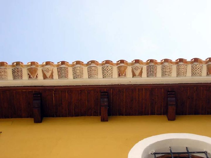 Se trata de una construcción aislada de dos plantas con porche de entrada y espadaña campanario. Posee cubierta inclinada con chapa de fibrocemento. En un primer momento los huecos de ventanas del inmueble eran cuadrangulares, los paramentos de la fachada estaban revocados en color blanco y las ventanas se hallaban remarcadas con franjas azules, al igual que el porche de entrada, la hornacina con la imagen de la Virgen que se sitúa en la esquina izquierda de la fachada principal y los huecos de la espadaña. En la actualidad los vanos de las ventanas están rematados en arco de medio punto, la cornisa presenta moldura de escayola con decoración geométrica variada y las fachadas están revocadas en color amarillo albero y rojo alicante, con franjas blancas remarcando los huecos. Una fuente con imagen de la Virgen en azulejería se sitúa frente a la fachada principal de la edificación.