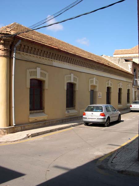 Podemos observar hoy día tres fachadas, ya que no es un edificio exento, sino que tiene adosados otros. Posee dos entradas, una de ellas se adivina como la principal por su ornamentado frontón. La división al exterior de las fachadas es armónica dentro de su sencillez, ya que se trata de ventanas enrejadas, con dinteles de ladrillo visto a sardinel y alféizares de acusada pendiente, en la base del vano, en piedra blanca. Las cubiertas de teja se asientan sobre unas cornisas también de ladrillo visto y que forman unos detalles, puestos a sardinel, a modo de mensulillas.
