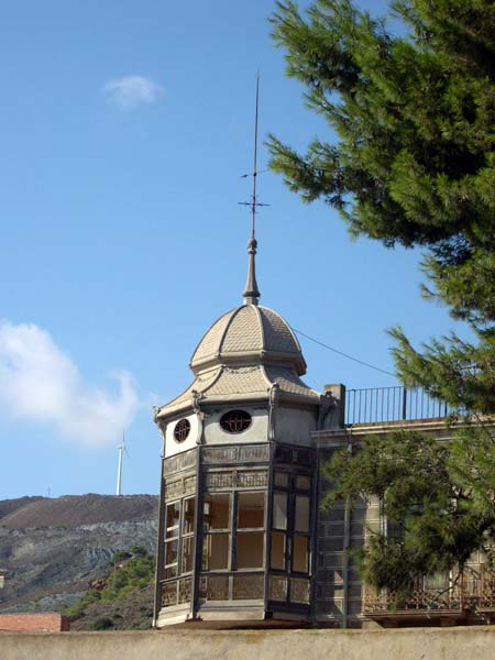 Mención especial, en el exterior, merecen los miradores. Uno de ellos, dando al jardín, de aspecto muy similar al de tantos otros de casas de finales del siglo XIX y principios del XX, aunque en su estructura advertimos que es un balconcillo, con tres ménsulas en la base y forja, cerrado con ventanales enmarcados en madera. El mirador que da tanto a la calle como al jardín, situado en la esquina de la fachada principal, sorprende por su cúpula de aire oriental y la alta aguja con la que corona su tejado de zinc. Este mirador mezcla la forja con las molduras de madera de los ventanales.