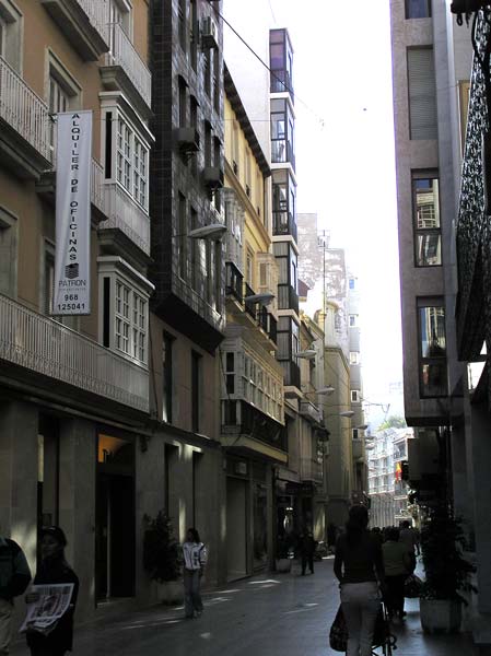 Ya desde su origen esta calle se transforma en el eje vertebrador de la ciudad, puesto que actúa como la puerta de entrada desde el mar al recinto amurallado, actual casco antiguo de Cartagena. Todo aquel que quisiera acceder a la ciudad desde el puerto o viceversa debía atravesar la Calle Mayor, transformándose ésta en lugar de paso obligado para ciudadanos y visitantes de cualquier origen, condición u oficio. Este motivo la convierte en un sitio muy apreciado por el comercio para situar sus establecimientos, por la burguesía para establecer sus residencias, por el estamento militar para ubicar sus oficinas, por las diversas sociedades recreativas burguesas para fijar sus sedes, y por los vendedores ambulantes para encontrar una buena clientela. De este modo, podemos afirmar que la Calle Mayor era el centro de la vida cívica y comercial de Cartagena.