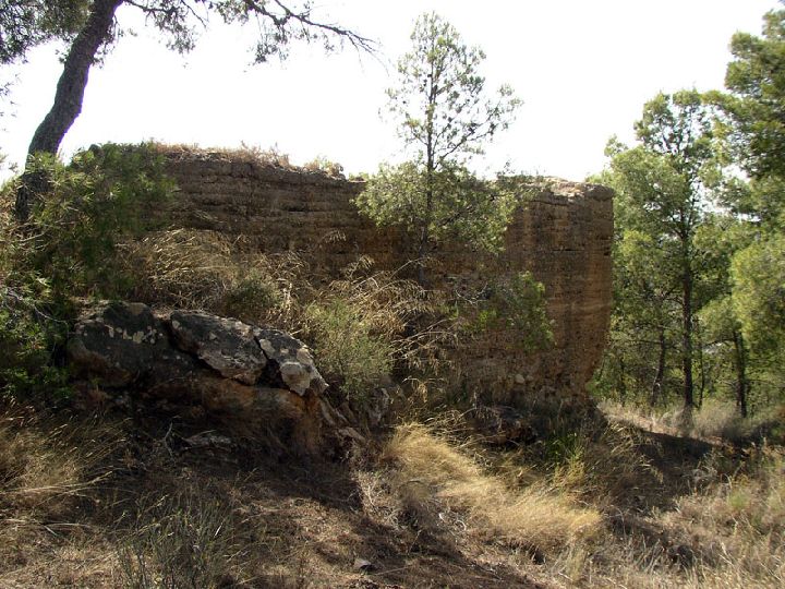 Los elementos arquitectónicos que se conservan fueron construidos con un sólido tapial de argamasa de cal cuyos encofrados poseen una altura aproximada de unos 80 cms, mientras que en los restos de las bóvedas es visible aún el uso de ladrillo.