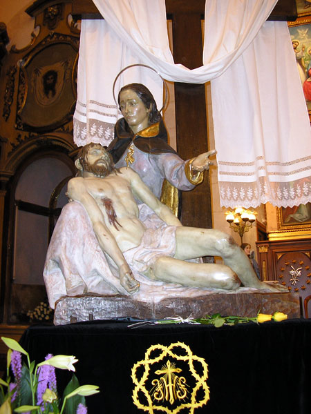 Piedad, siglo XX (1943), de José Capuz. Realizada en madera policromada. Representa a la Virgen María con el cuerpo de Cristo muerto, que sostiene con su brazo derecho.