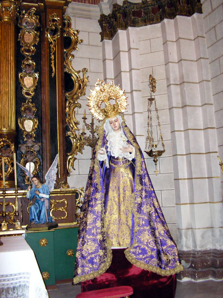 Virgen de la Soledad, siglo XX (1942), del escultor Juan González Moreno. Realizada en madera policromada. Imagen de vestir, de tamaño natural, de gran expresión.