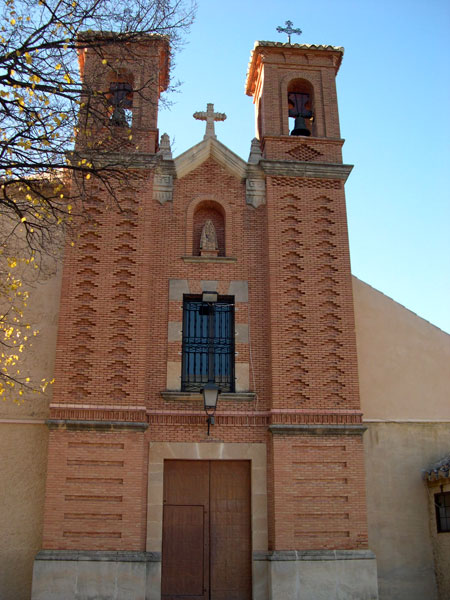 La Iglesia, en el cuerpo central de la fachada consta de dos torres gemelas construidas en ladrillo y en la parte superior hay una imagen de la titular del templo. La reconstrucción de la fachada data de 1902.
