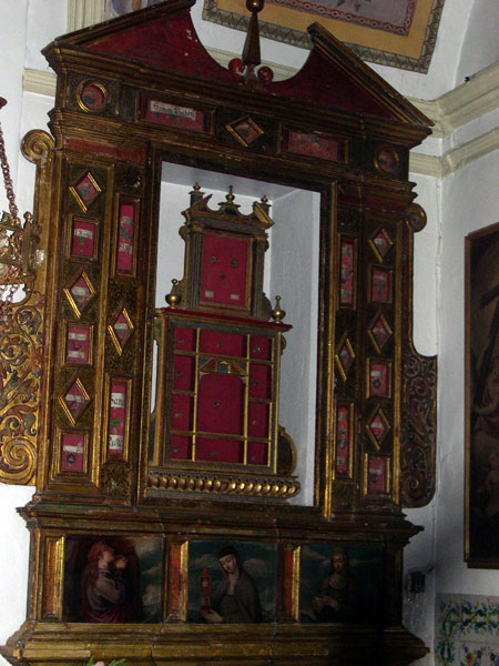 El crucero está flanqueado por dos magníficos relicarios del año 1613 que contienen las reliquias traídas por el Marqués de Villena a principios del siglo XVII desde Italia.