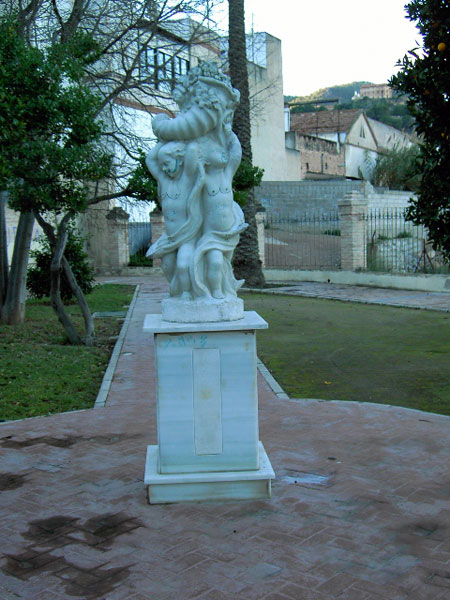 El edificio estaba rodeado por un impresionante jardín que permanecía circundado por una cerca decorada con un bello trabajo de forja. El acceso al interior de esta propiedad se realizaba por medio de una gran puerta de hierro, situada entre dos pilares labrados. Sobre uno de estos pilares había colocada una placa en la que se podía leer el nombre de la casa: La Rosaleda.