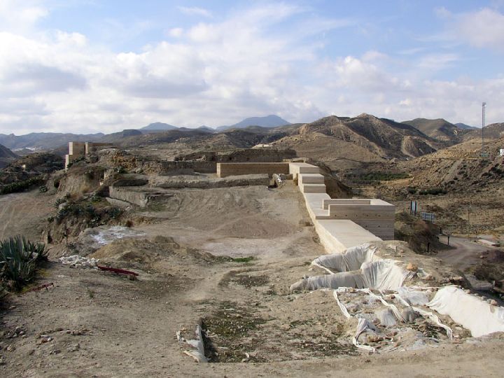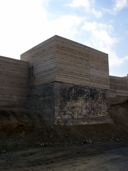Toda la construcción se levantó mediante la técnica del tapial y utilizando argamasa de cal sobre una potente rezarpa de cimentación excavada en el terreno.