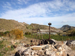 El pozo de esta noria es de forma circular y se encuentra excavado en la misma roca donde se apoya la noria.